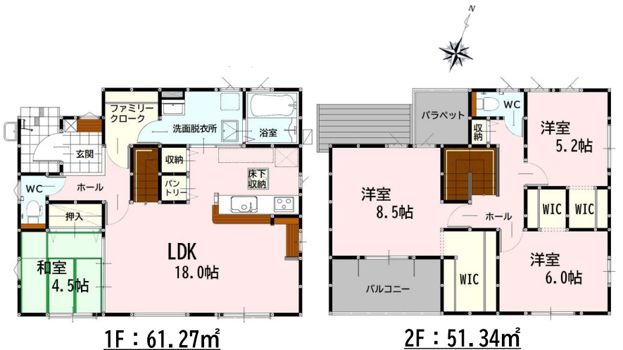 エコジョーズ LDK18帖 34坪 4SLDK W.I.C ファミリークローク 駐車4台可