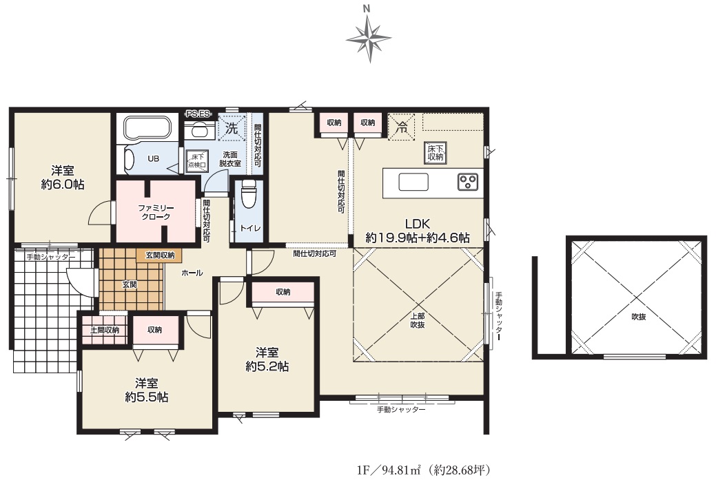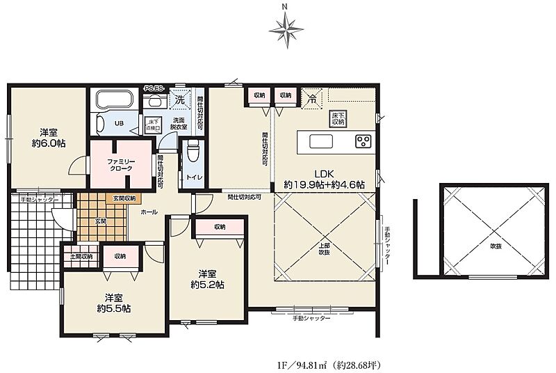 平屋 エコジョーズ LDK24帖以上 28坪 3SLDK 駐車3台可