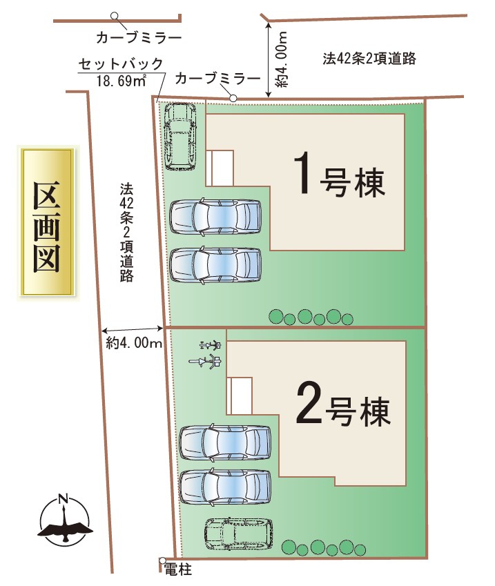 | 駐車場 | 2台 | 道路の幅員 | 西側4.0m公道 |