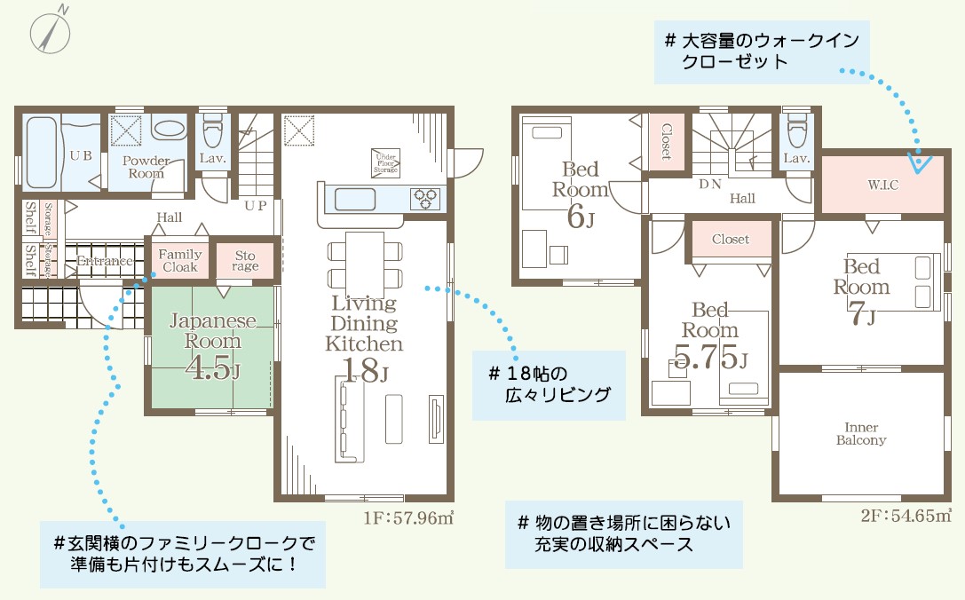 エコジョーズ LDK18帖 和室 34坪 4LDK ファミリークローク 駐車4台可