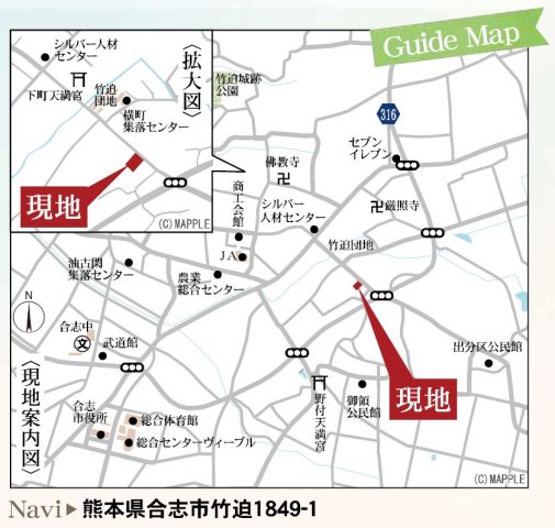 - ※地図、航空写真情報および地形ならびに周辺のお店・施設は、必ずしも現況を表すものではありません。