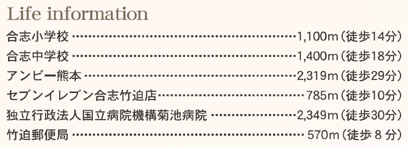 - ※物件から周辺のお店・施設までの距離は、利用が想定される道路を通行した場合の距離です。なお、必ずしも最短距離を保証するものではありません。