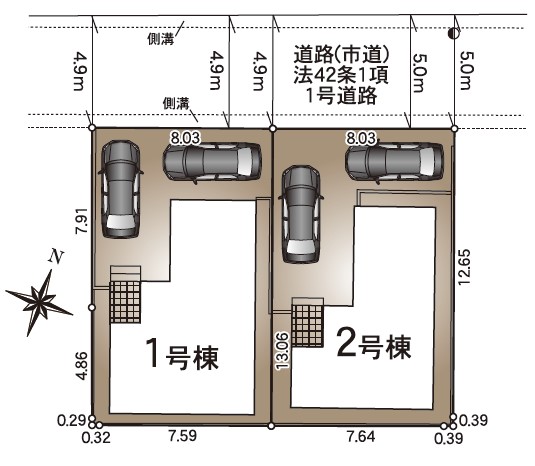 | 駐車場 | 2台 | 道路の幅員 | 北側4.9m公道 |