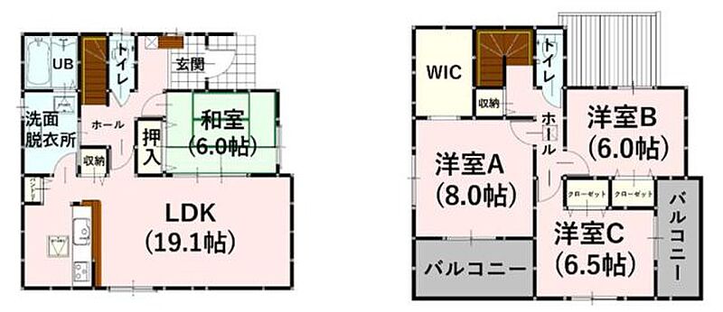 エコジョーズ LDK18帖以上 和室 34坪 4LDK WIC シューズクローク 駐車3台可