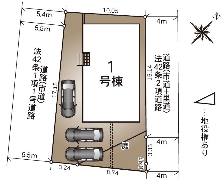 | 駐車場 | 2台 | 道路の幅員 | 西側5.4m公道 |