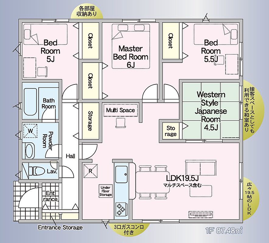 平屋 エコジョーズ LDK19帖以上 和室 26坪 4LDK 駐車3台可