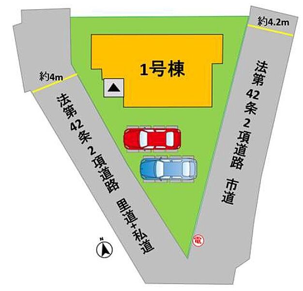 | 駐車場 | 2台 | 道路の幅員 | 西側4.0m公道 |