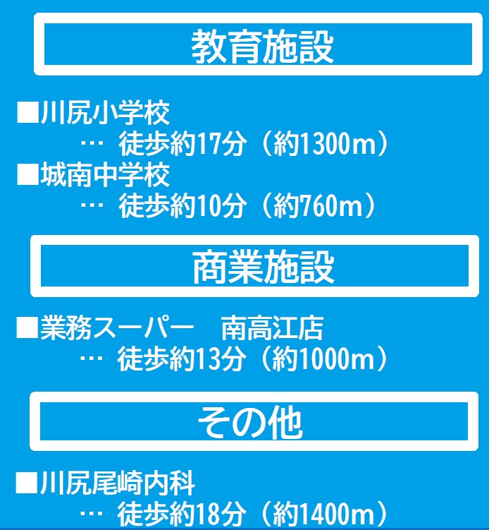 - ※物件から周辺のお店・施設までの距離は、利用が想定される道路を通行した場合の距離です。なお、必ずしも最短距離を保証するものではありません。