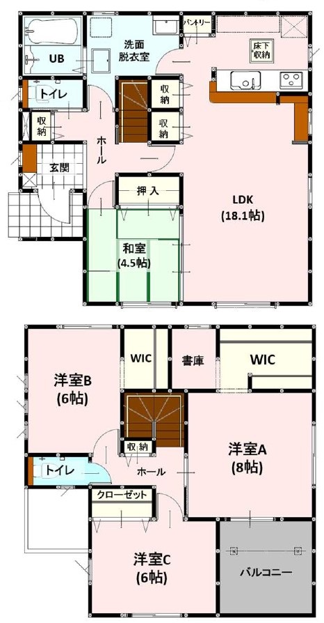 エコジョーズ LDK18帖 和室 34坪 4LDK パントリー W.I.C 駐車2台可