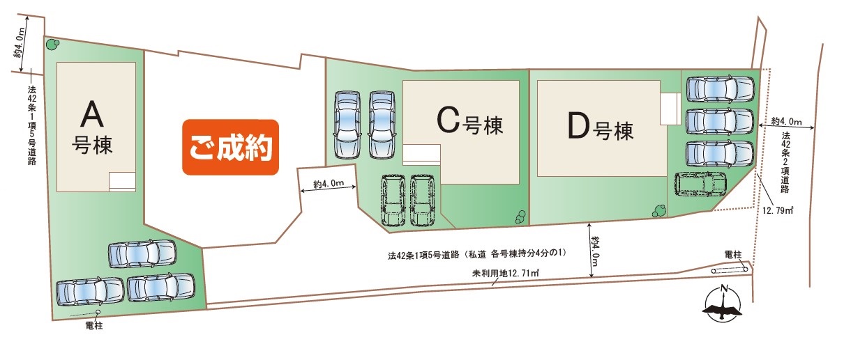 | 駐車場 | 2台 | 道路の幅員 | 南側4.0m私道 |