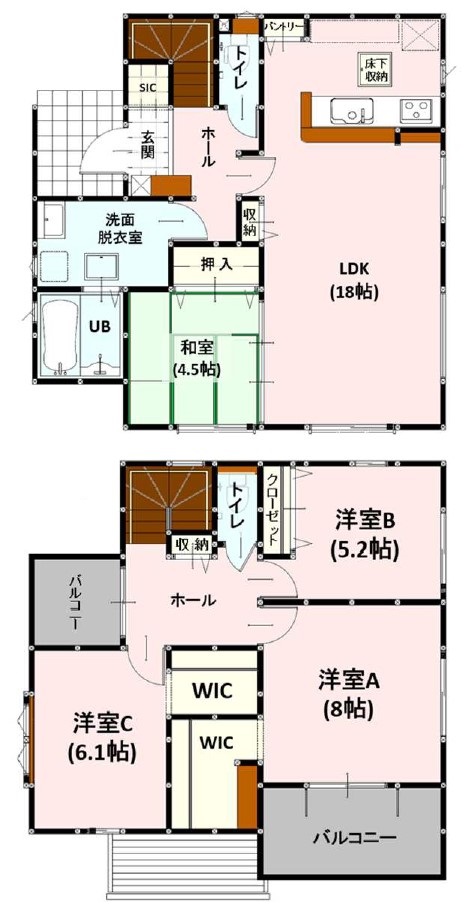 エコジョーズ LDK18帖 和室 32坪 4LDK パントリー W.I.C 駐車2台可