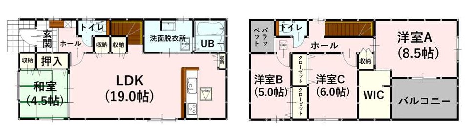 エコジョーズ LDK19帖 33坪 4LDK 和室 WIC 駐車3台可