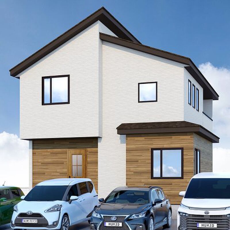 ウッド調の外壁がポイントです! LDKは広々23.7帖♪ 間仕切り対応可で5LDKまで対応可能♪ 駐車場は最大4台まで可能♪ 最寄りバス停まで徒歩約3分♪ 城山小学校まで徒歩約7分♪
