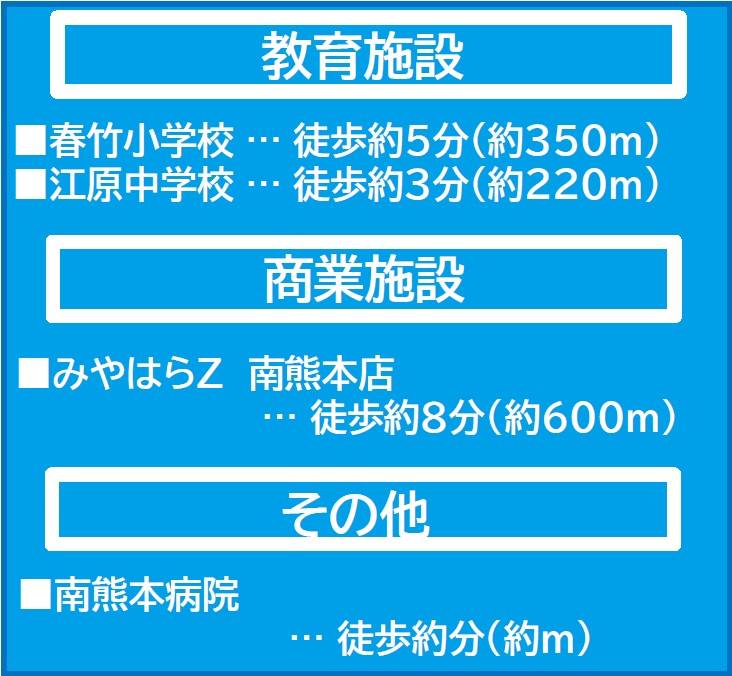 JR豊肥本線「南熊本」駅 徒歩8分 熊本市電A系統「河原町」駅 徒歩22分 |