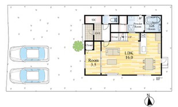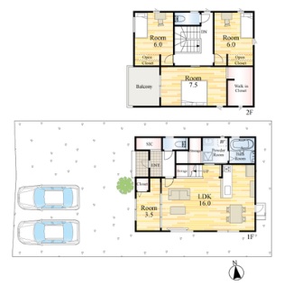 シューズクロークやウォークインクローゼットなど、家中が片付く豊富な収納を完備。家族の荷物もスッキリ収まります。駐車スペースは2台分を確保しており、共働き世帯や来客時にも嬉しい、実用性の高い住まいです。