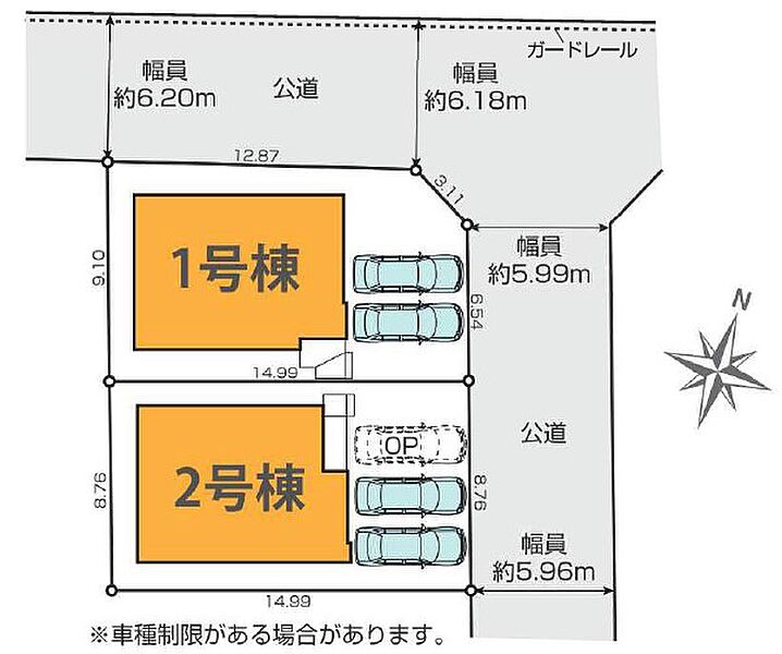 | 駐車場 | 2台 | 道路の幅員 | 北西側6.1m公道 |