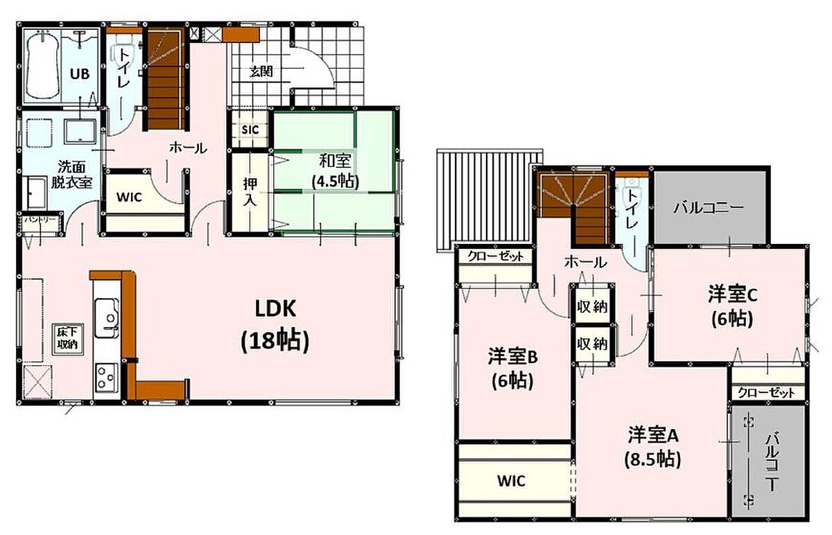 エコジョーズ LDK18帖 和室 34坪 4LDK WIC 駐車4台可