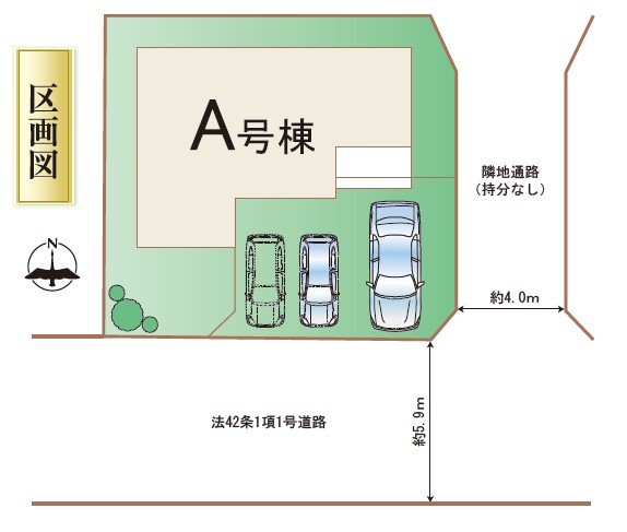 | 駐車場 | 3台 | 道路の幅員 | 南側5.9m公道 |