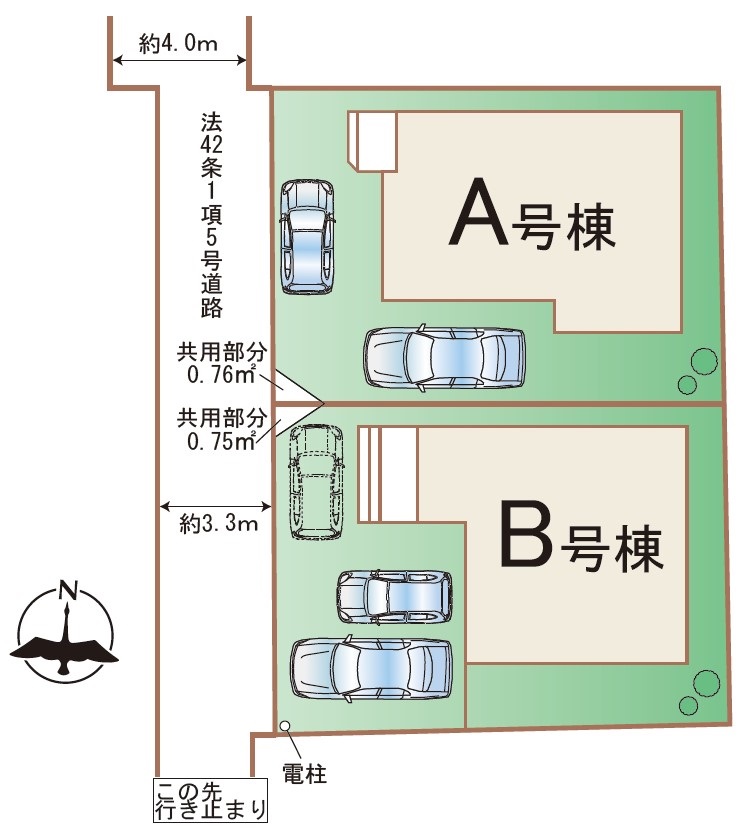 | 駐車場 | 2台 | 道路の幅員 | 西側3.3m私道 |