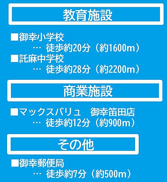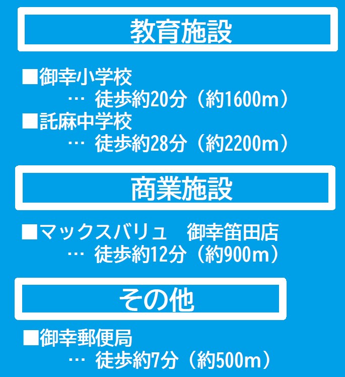 - ※物件から周辺のお店・施設までの距離は、利用が想定される道路を通行した場合の距離です。なお、必ずしも最短距離を保証するものではありません。