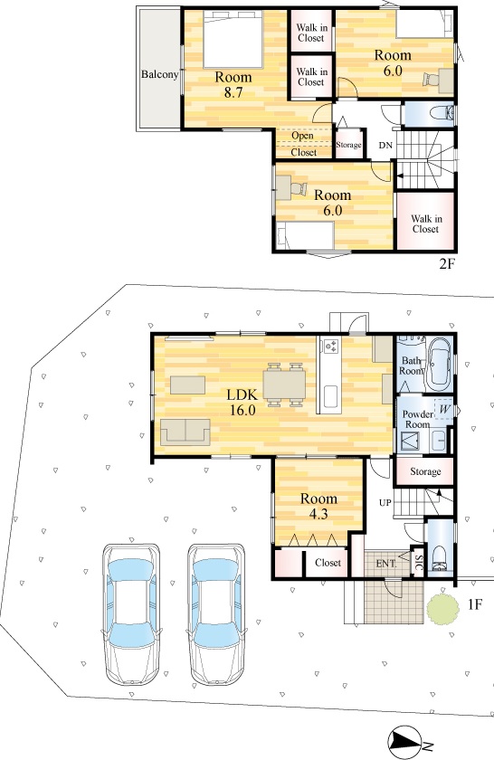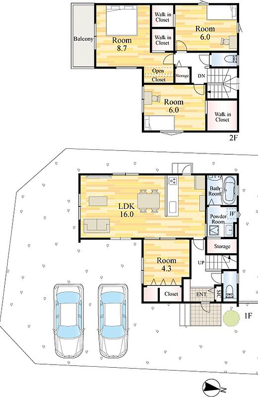 WIC3か所やSIC、洗面室収納、全居室収納など収納力が充実。主寝室は8.7帖、南面道路とバルコニーで明るい住空間を実現。