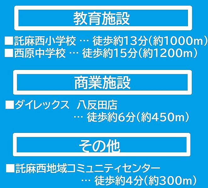 - ※物件から周辺のお店・施設までの距離は、利用が想定される道路を通行した場合の距離です。なお、必ずしも最短距離を保証するものではありません。