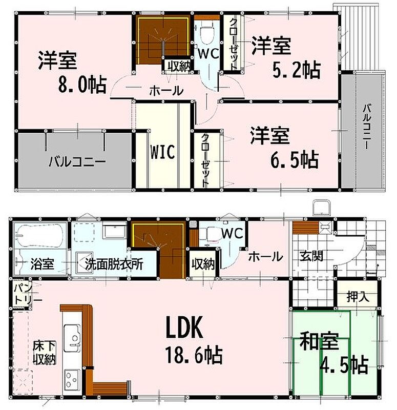 エコジョーズ LDK18帖以上 和室 32坪 4LDK WIC 駐車2台可