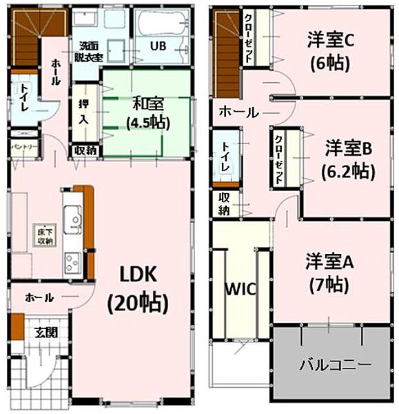 エコジョーズ LDK20帖 34坪 4LDK WIC 駐車2台可