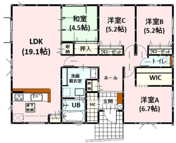 平屋 エコジョーズ LDK19帖以上 30坪 4LDK 和室 WIC 駐車2台可