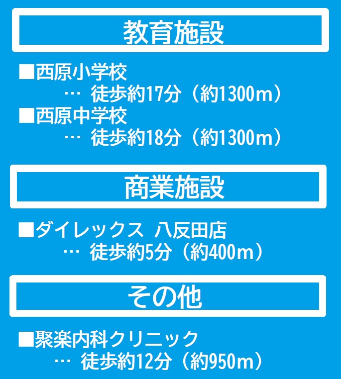 - ※物件から周辺のお店・施設までの距離は、利用が想定される道路を通行した場合の距離です。なお、必ずしも最短距離を保証するものではありません。
