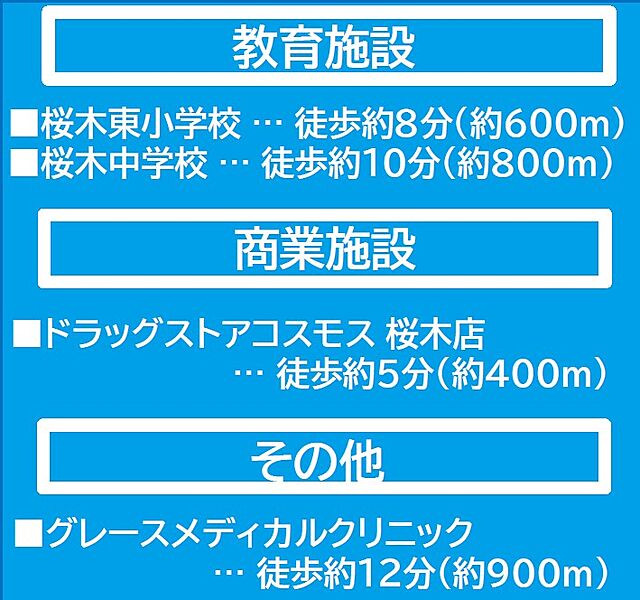 - ※物件から周辺のお店・施設までの距離は、利用が想定される道路を通行した場合の距離です。なお、必ずしも最短距離を保証するものではありません。