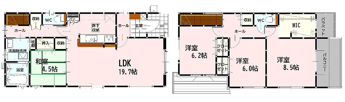 エコジョーズ LDK19帖以上 和室 34坪 4LDK WIC 駐車2台可