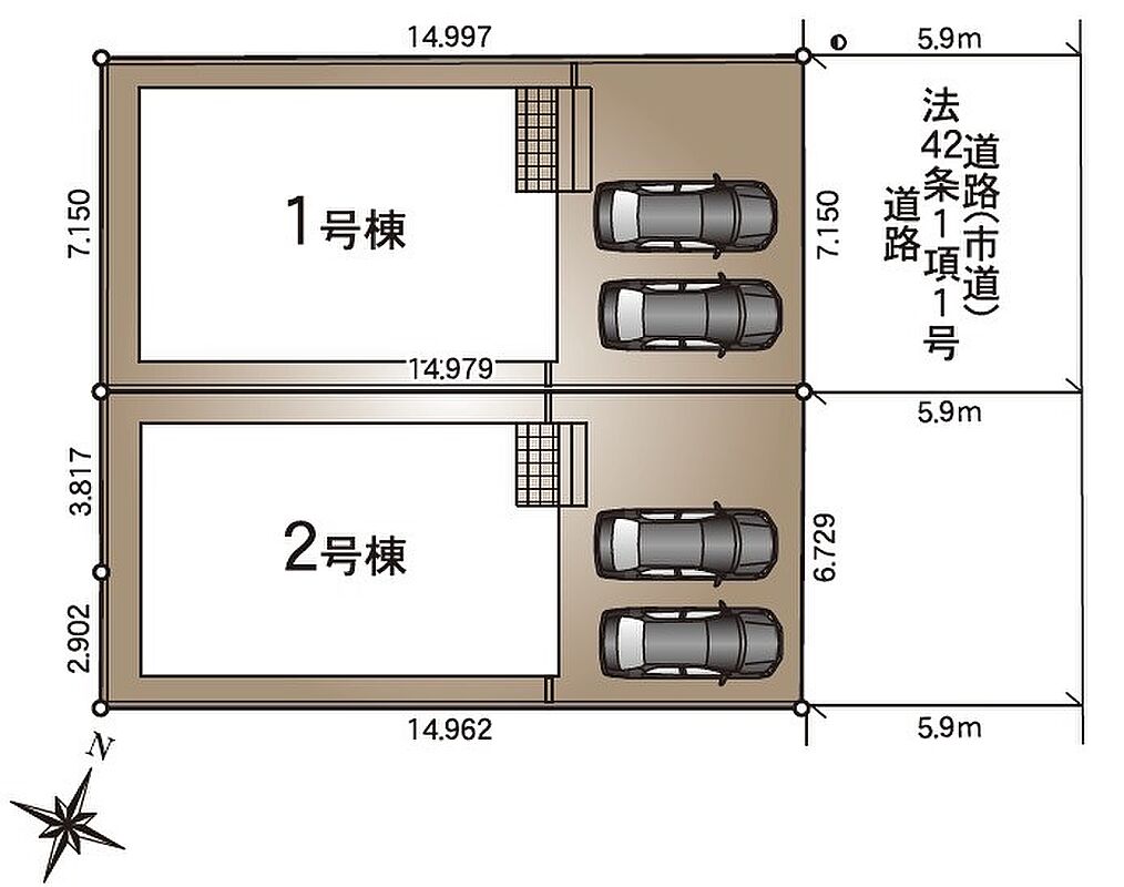 | 駐車場 | 2台 | 道路の幅員 | 東側5.9m公道 |