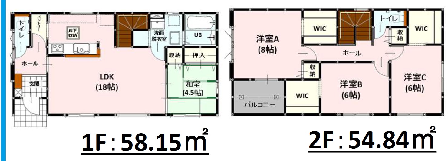 エコジョーズ LDK18帖 和室 34坪 4LDK WIC 駐車2台可