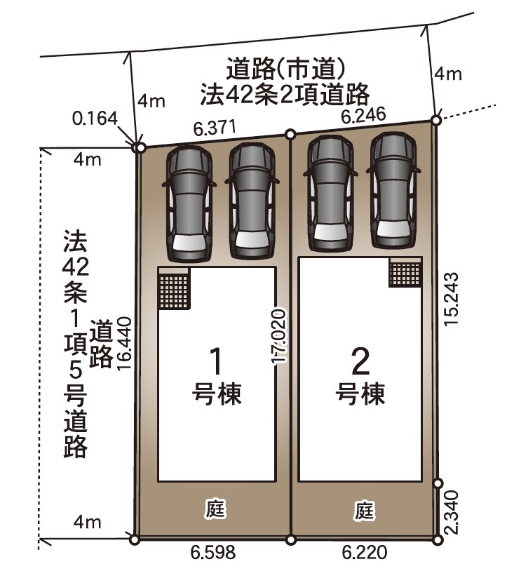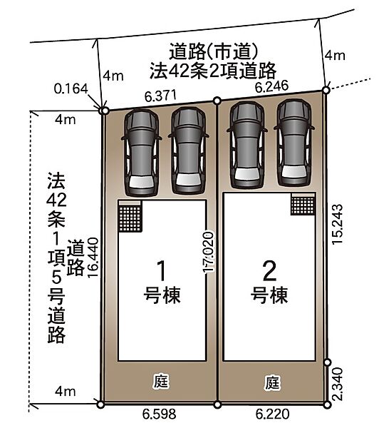 | 駐車場 | 2台 | 道路の幅員 | 北側4.0m公道 |