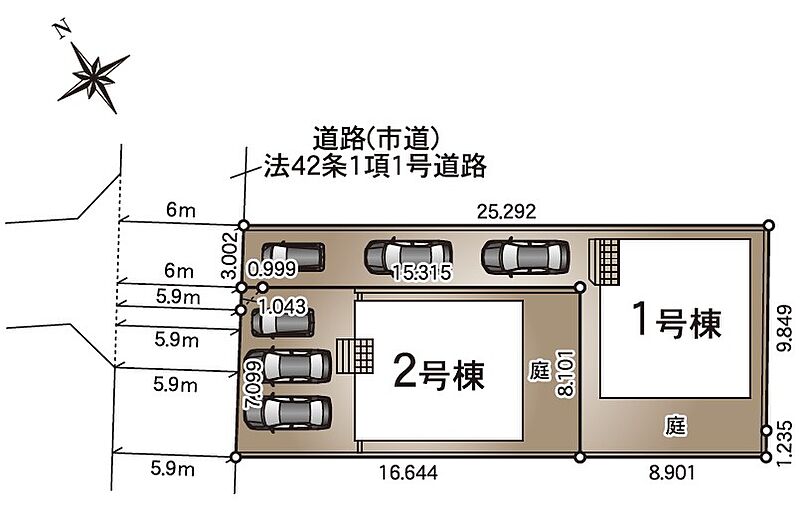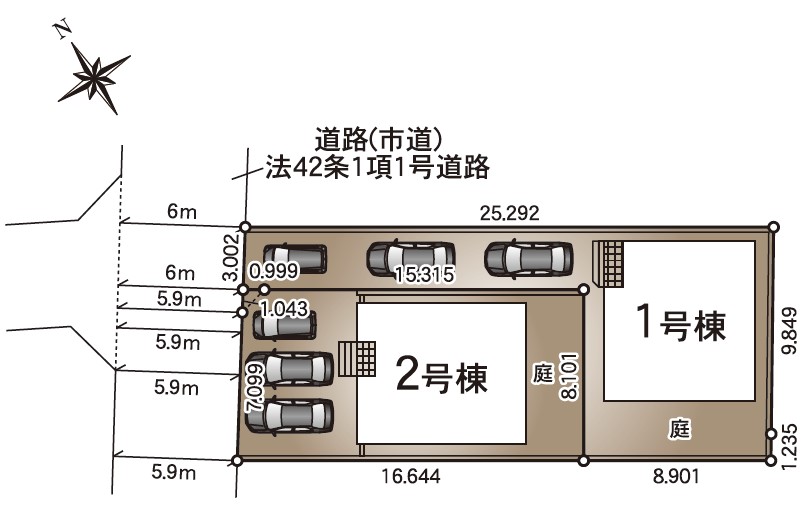 | 駐車場 | 2台 | 道路の幅員 | 北西側5.9m公道 |