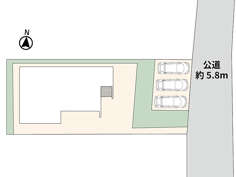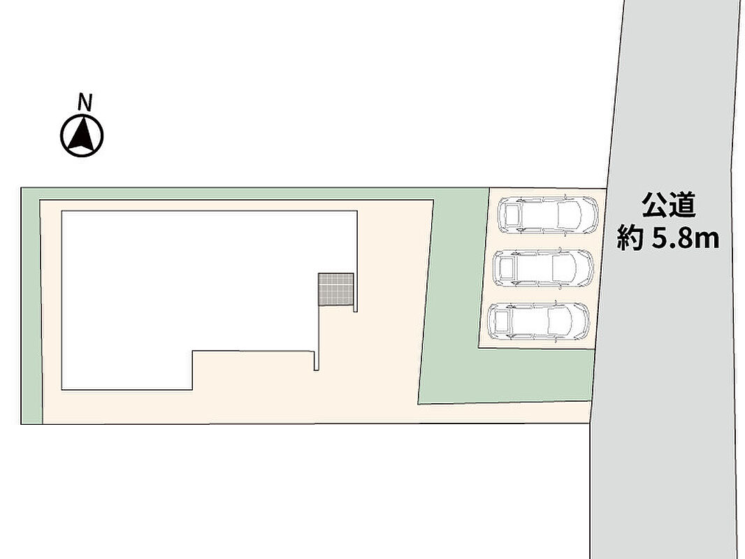 | 駐車場 | 3台 | 道路の幅員 | 東側5.8m公道 |