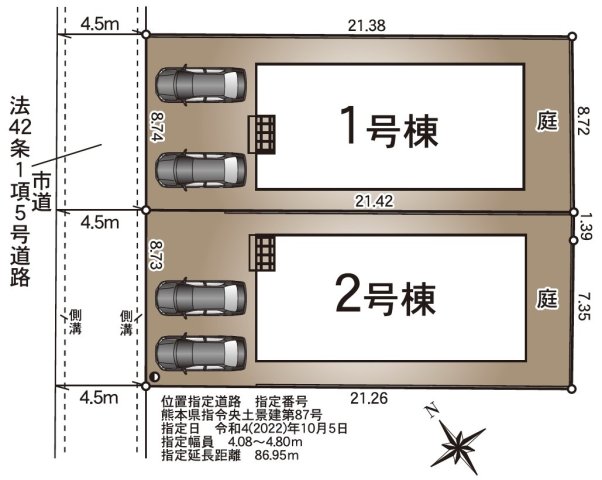 | 駐車場 | 2台 | 道路の幅員 | 北西側4.5m私道 |