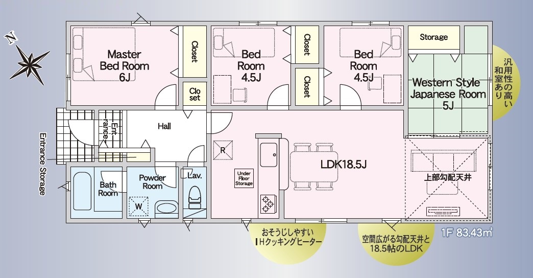 エコキュート 平屋 LDK18帖以上 和室 25坪 4LDK 駐車2台可