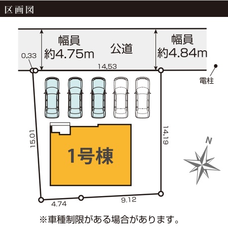 | 駐車場 | 5台 | 道路の幅員 | 北側4.7m公道 |