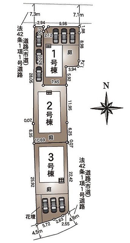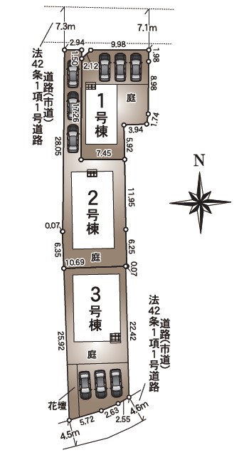| 駐車場 | 3台 | 道路の幅員 | 北側7.1m公道 |