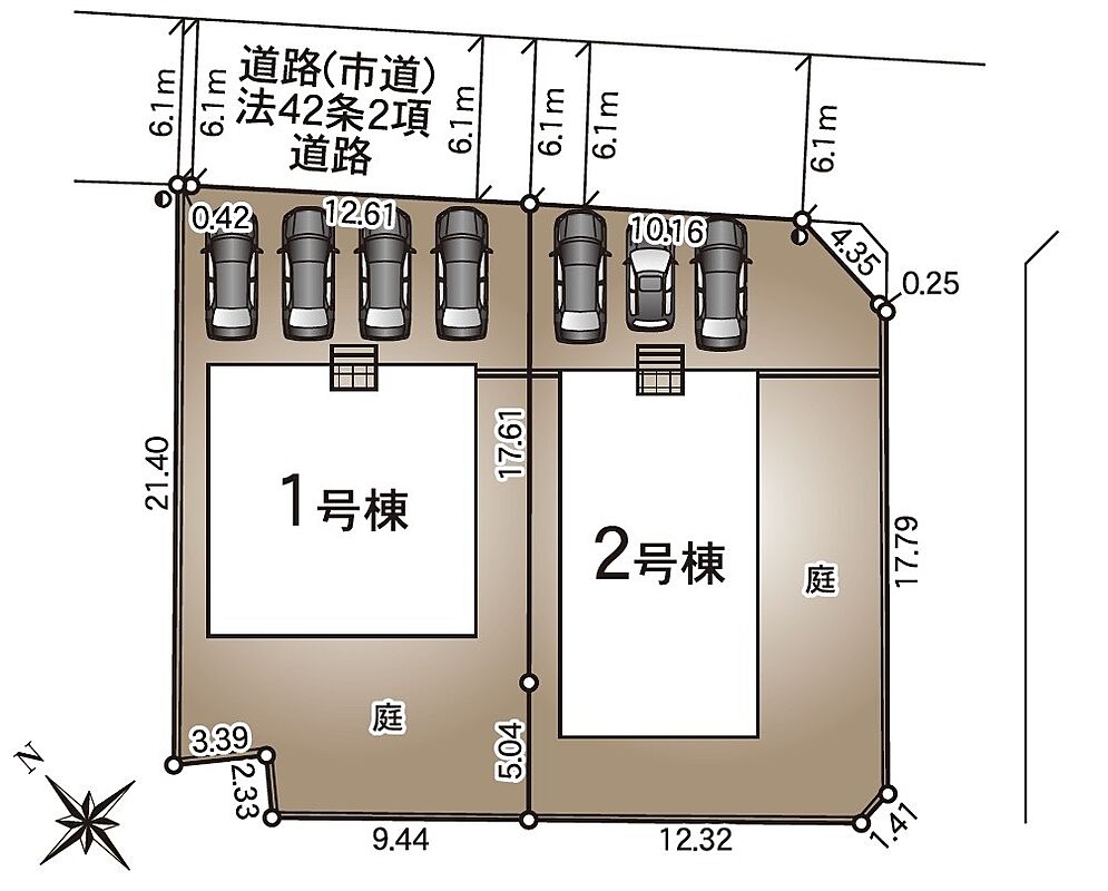 | 駐車場 | 4台 | 道路の幅員 | 北東側6.1m公道 |