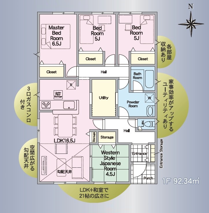 平屋 エコジョーズ LDK16帖以上 27坪 4LDK 駐車3台可