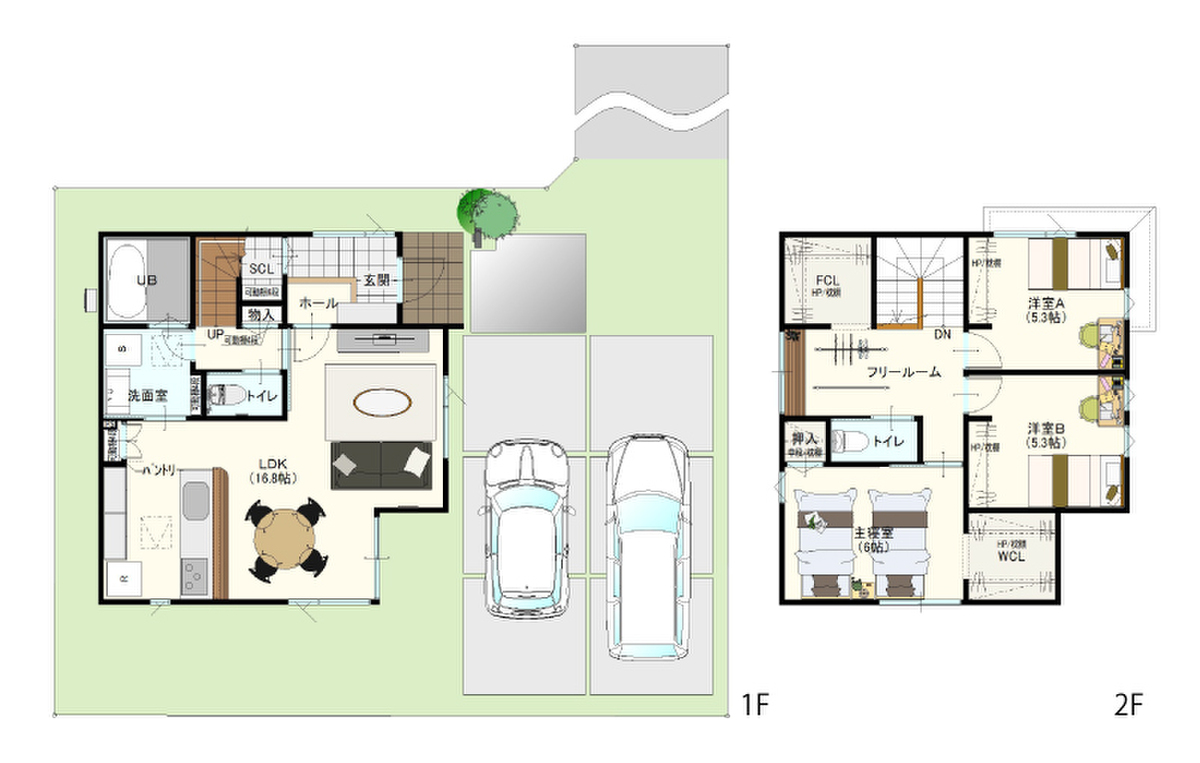 | 建物面積 | 92.74m2(28.05坪)~94.81m2(28.67坪) | 土地面積 | 182.66m2(2号地)、193.67m2(3号地) |