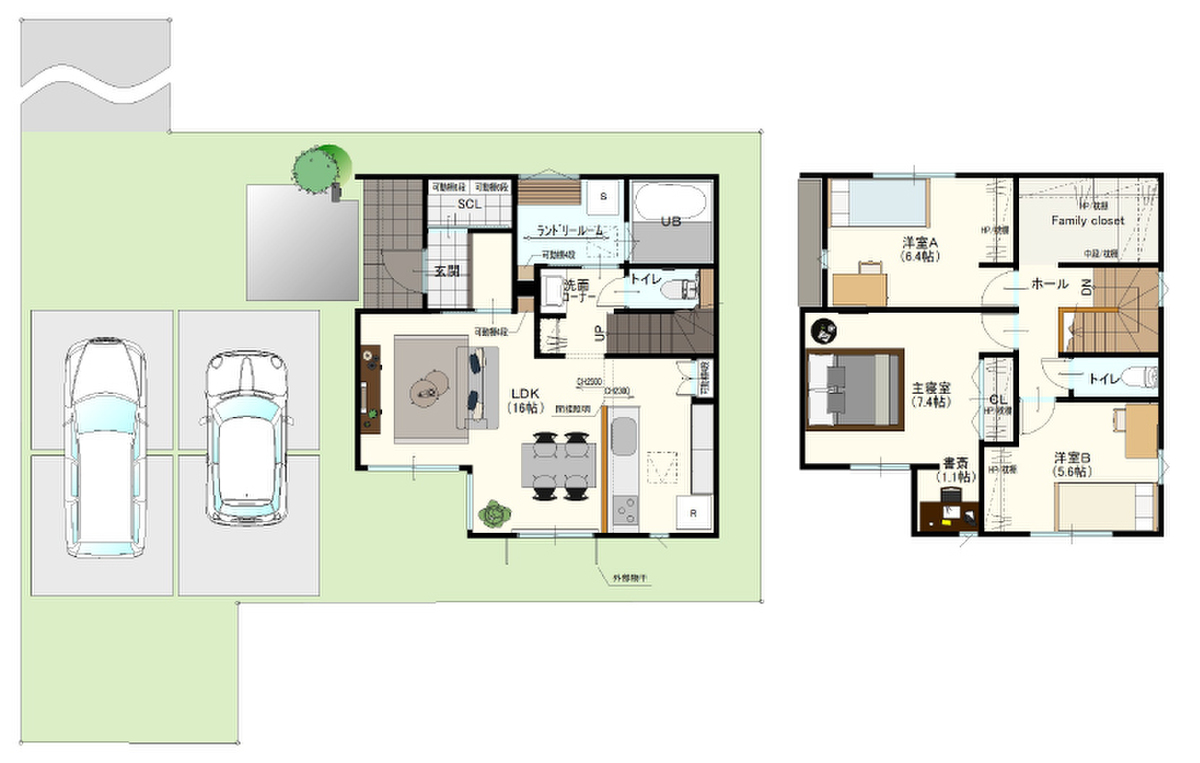 - ※完成予想図やCG合成画像は、門塀・植栽・庭・外観等、実際とは多少異なる場合があります。
