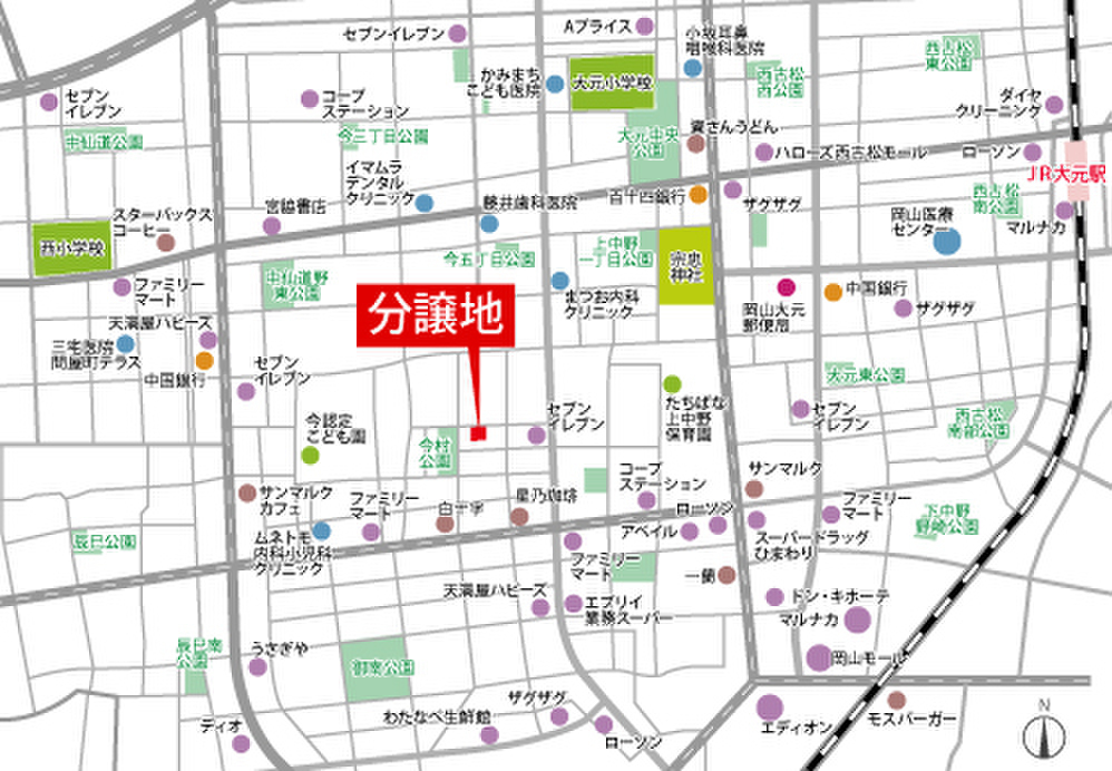 JR瀬戸大橋線「大元」駅 徒歩22分 JR宇野線「備前西市」駅 岡電バス 徒歩3分「今六丁目」バス停 徒歩20分 |