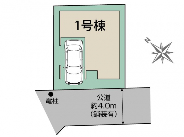 | 駐車場 | 1台 | 道路の幅員 | 南西側約4.0m公道(舗装有) |