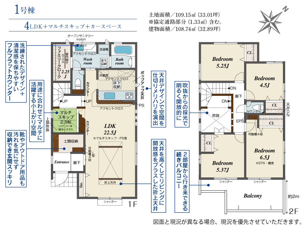 | 建物面積 | 108.74m2(約32.89坪) | 土地面積 | 109.15m2(約33.01坪) |