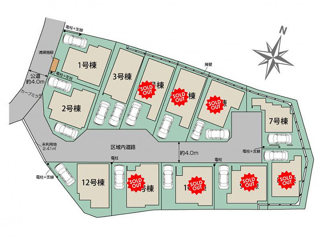 【接道】西側約4.0m公道、分譲地内開発道路約4.0m 【設備】公営水道、東京電力、都市ガス、本下水 【その他法令】準防火地域、根岸台七丁目西地区地区計画、埋蔵文化財包蔵地、注視地区(朝霞駐屯地他) 【その他記載事項】建物の図面は900グリッドで作成しています。 【その他持分】【清掃施設】3.03m<sup>2</sup>×各1/12【未利用地】2.41m<sup>2</sup>×各1/11(2~12号地) |