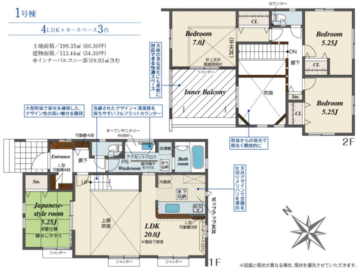 | 建物面積 | 113.44m2(約34.31坪) | 土地面積 | 199.35m2(約60.30坪) |